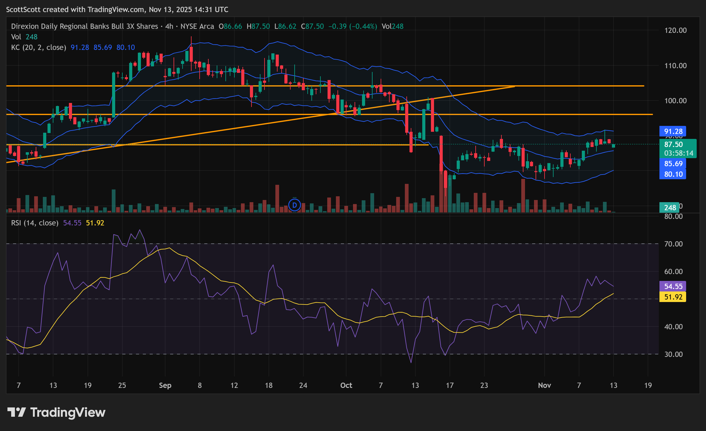 I currently own DPST at $100/share. Not unlike many other stocks, DPST currently dipped below the 200 day moving average of $95.68, falling victim to the emotions of the market with tariff announcements/rumors. I think at Put around the $82.00 mark (.26 Delta), 11/21 expiration (9-day hold), is a solid play, as DPST has been trending north this week back towards the 200 day moving average. A Put at this strike should yield between $150-180 in profits, with the potential for an early buy back before expiration for profit, freeing us up to find another good position to maximize our profits.